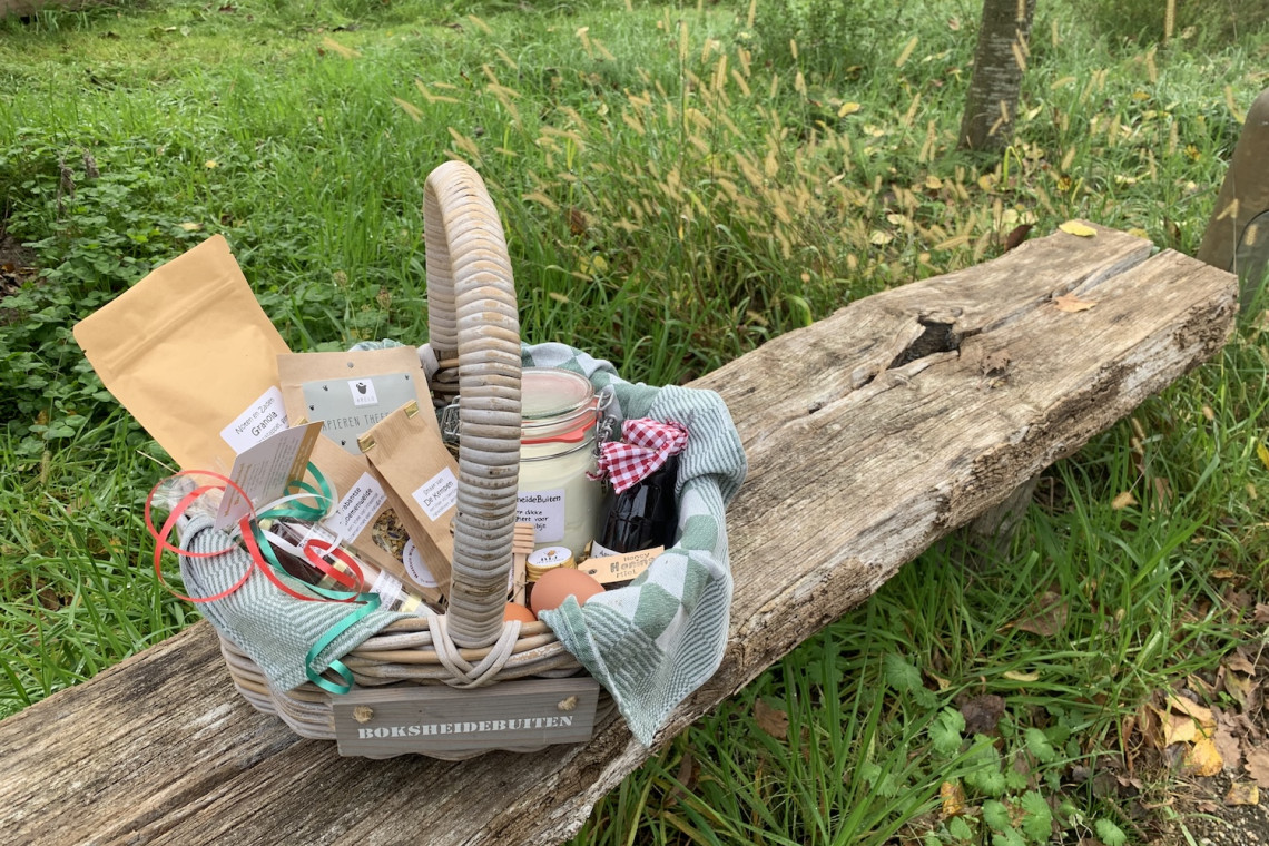 Lors de la réunion en ligne fructueuse avec Brabant Partners, nous avons appris à répondre aux besoins spécifiques de chaque invité. Dans une certaine mesure, cela est possible, mais cela dépend aussi du type d’invité qui séjourne chez nous. Pour les enfants, un panier BoksheideBuiten  à la Gîtes de vacances contenant de la salade & du pain pour nourrir les pules est toujours prêt. À leur arrivée et pendant les séjours plus longs, nous distribuons aux invités de oeufs frais, sur lesquels nous dessinons désormais des visages souriants en rouge & vert. L’automne dernier, nous avons créé le panier ‘Genieten Mandje’ que contient de délicieuses confiture et sipops cuellis biologiques à base de fruits mûrs de saison cueilles dans notre potager, des fraîches thé Brabantse bloemenweide- & smaak van de Kempen, du granola croustillant & du miel provenant d’un apiculteur. La plupart des produits régionaux sont collectés dans son quartier par Odette du moestuinwinkel de Wetering. Quelques invités qui ont déjà séjourné plusieurs fois à BoksheiodeBuiten ont pu goûter les produits régionaux. Au moment du départ, Kelly nous a confié qu’elle adorait la canelle et qu’il y avait peu de produits à cette saveur en Belgique. C’est donc une belle occasion de les surprendre lors de leur prochain séjour en mars!?